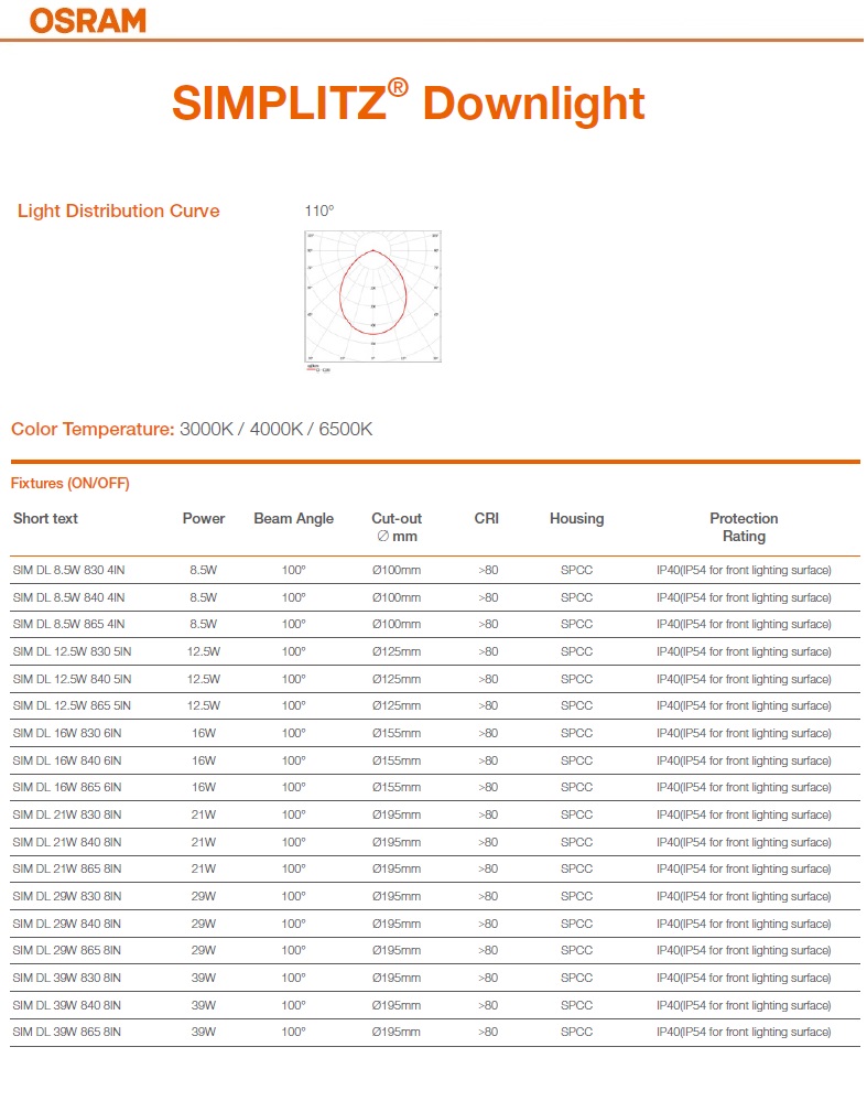 – Power 8.5W,12.5W,16W,21W,29W,39W